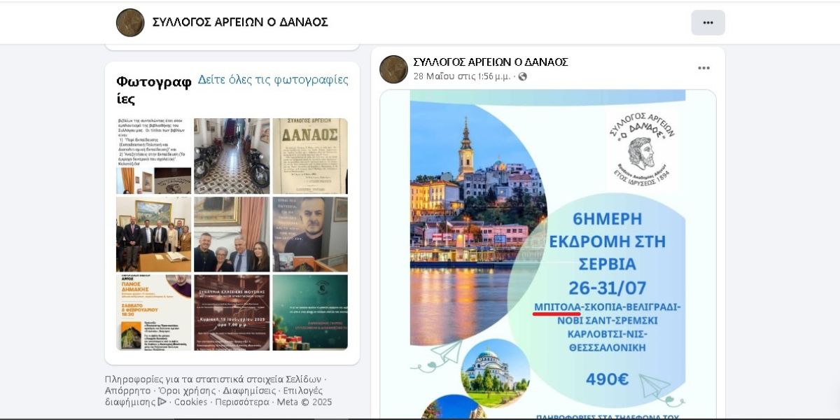 Όταν, λοιπόν, ένας ιστορικός Σύλλογος του Άργους, ο Σύλλογος Αργείων «Ο Δαναός», που ιδρύθηκε το 1894 και αυτοπροσδιορίζεται ως φιλολογικό, πνευματικό και πολιτιστικό σωματείο διοργανώνει εκδρομή στην Σερβία και μέσα στους προορισμούς του αναφέρει το Μοναστήρι με την σλαβομακεδόνικη ονομασία Μπίτολα, απορώ πώς είναι δυνατόν να συμβαίνει αυτό και να μην αντιδράει κανείς…