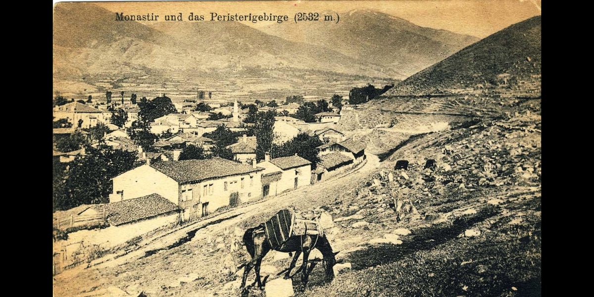 Επιστολική Γερμανική κάρτα του 1916 από το Μοναστήρι. Το είχαν καταλάβει οι σύμμαχοί τους Βούλγαροι. Η κάρτα χρησιμοποιεί τις ελληνικές ονομασίες της πόλης και της οροσειράς (Περιστέρι) πάνωθέ της.