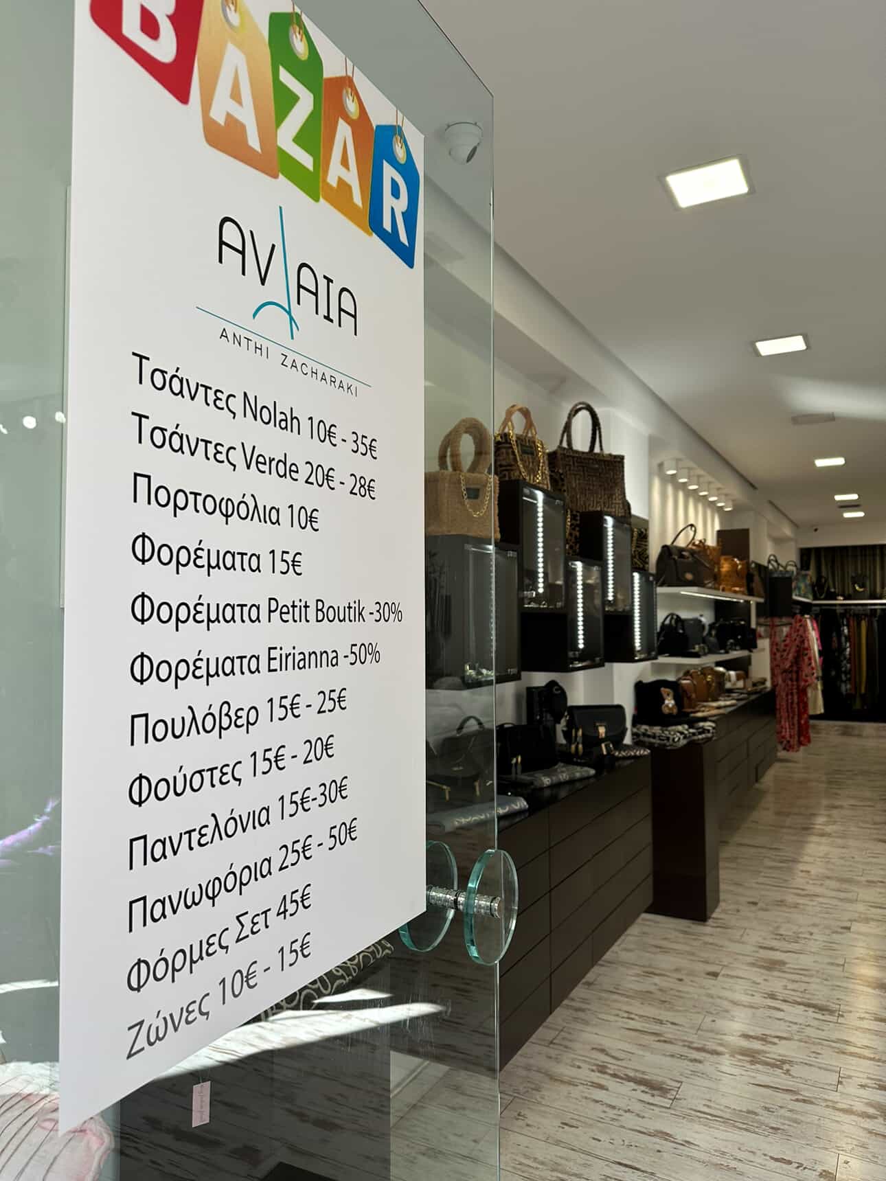 Το κατάστημα Avlaia στο Άργος (Καποδιστρίου 23) διοργανώνει bazaar, δίνοντας τη δυνατότητα να επωφεληθείτε από σημαντικές εκπτώσεις.