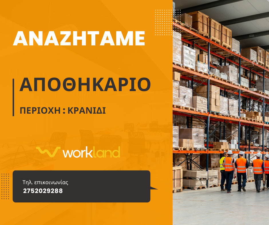 Ζητείται Αποθηκάριος για εργασία στο Κρανίδι