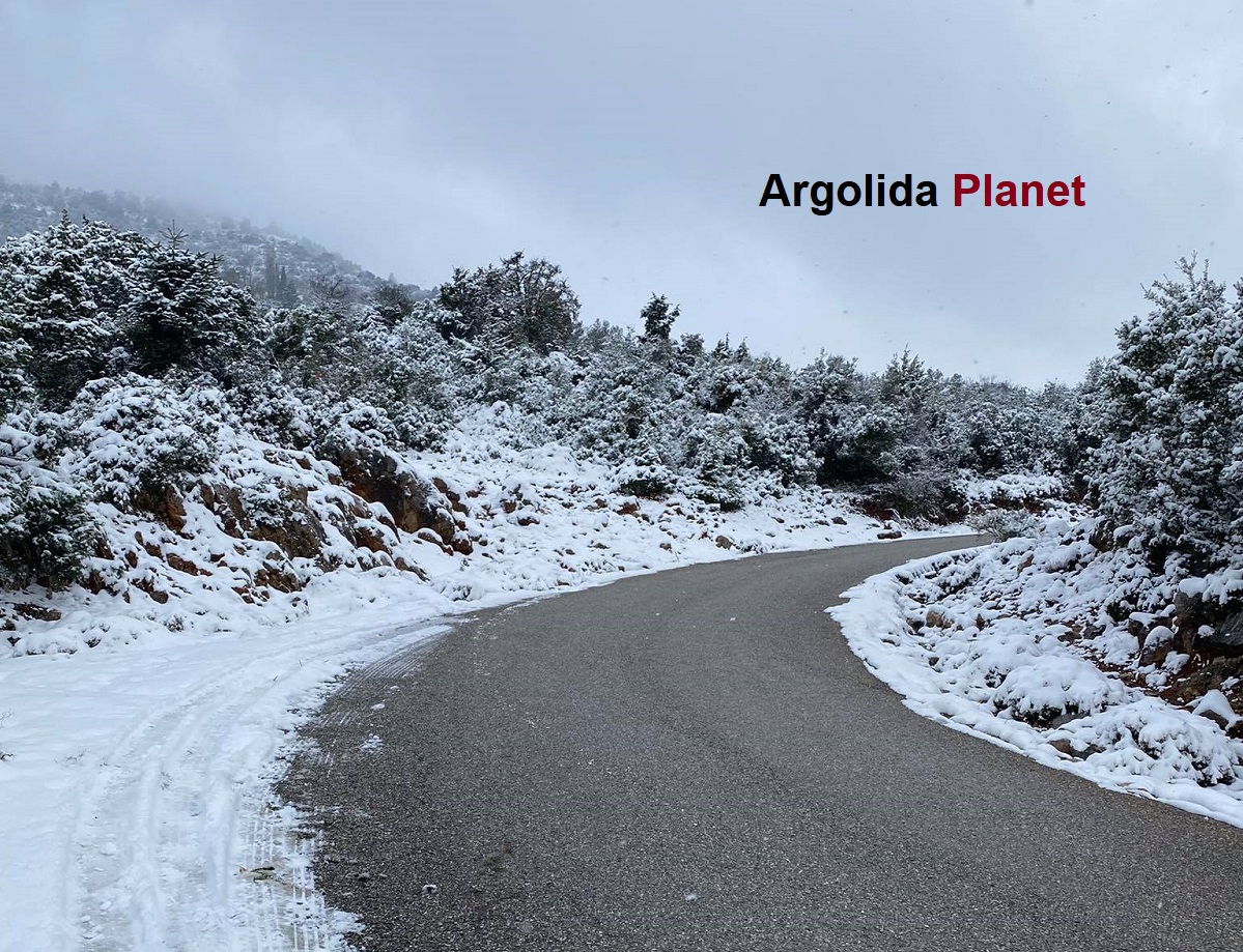 Τη νύχτα χιόνισε στα ορεινά τμήματα του νομού με αποτέλεσμα τα χιόνι να παγώσει και ο δρόμοι να καταστούν πολύ δύσκολα προσπελάσιμοι. Στο σημείο της παλαιάς εθνικής βρίσκονται τα γκρέιτερ της Π.Ε. Αργολίδας.