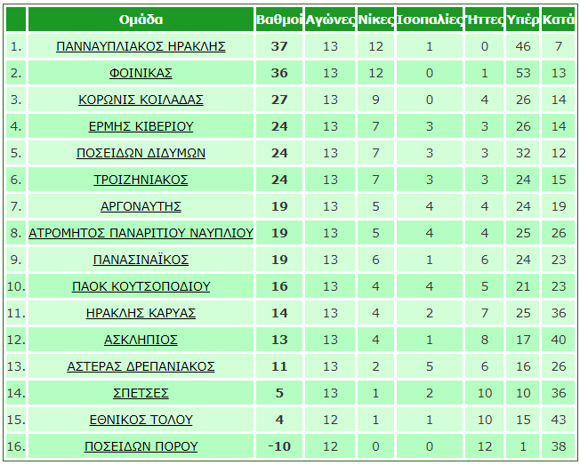 Με τους αγώνες της 13ης αγωνιστικής συνεχίστηκε την Τετάρτη 20 Δεκεμβρίου το πρωτάθημα της Α1 κατηγορίας της ΕΠΣ Αργολίδας.