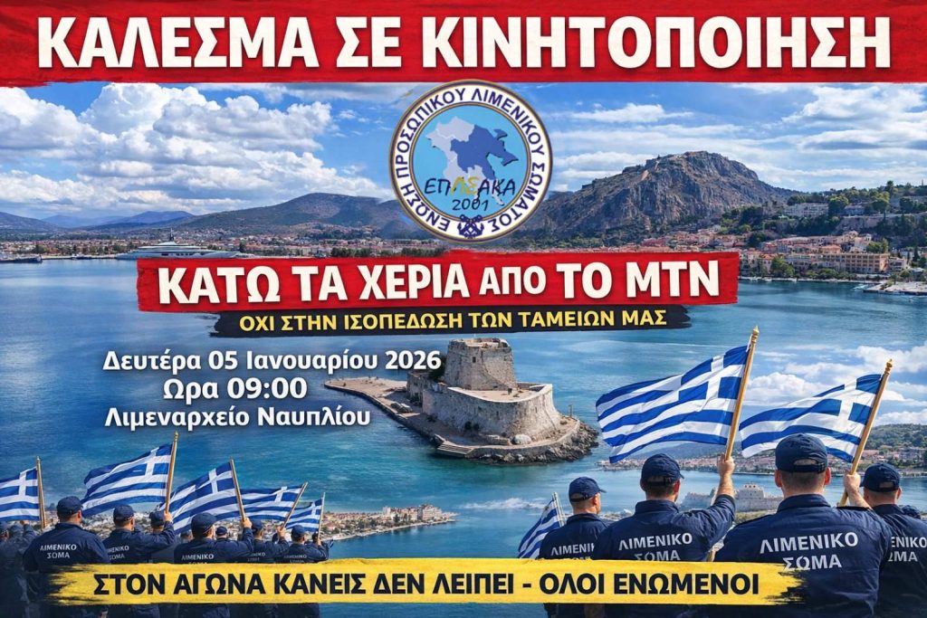 Την ίδια ώρα, οι Πρωτοβάθμιες Ενώσεις Προσωπικού θα προχωρήσουν σε παράλληλες διαμαρτυρίες έξω από τις κατά τόπους Λιμενικές Αρχές, μεταξύ αυτών και στο Λιμεναρχείο Ναυπλίου.