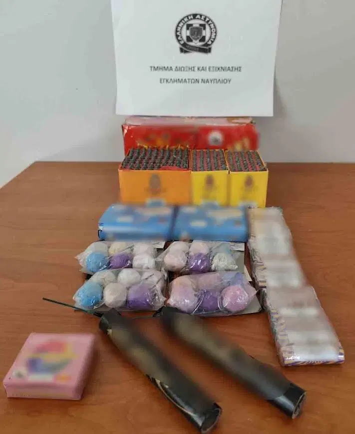 Κατά την επιχείρηση, οι αστυνομικοί βρήκαν και κατέσχεσαν κροτίδες, δεκάδες πυροτεχνικά παιδικά αθύρματα διαφόρων τύπων, καθώς και περίπου 200 βολές πυροτεχνημάτων, επιβεβαιώνοντας τις πληροφορίες που είχαν στη διάθεσή τους.