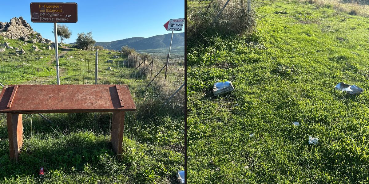 Όπως δείχνουν και οι αποκλειστικές εικόνες του Argolida Planet, υπάρχει μόνο μια φθαρμένη ξύλινη βάση χωρίς καμία απολύτως ενημέρωση και γύρω από αυτή ασυμμάζευτα σκουπίδια.