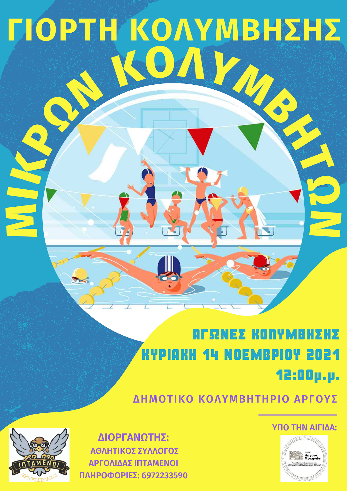 Την Κυριακή 14 Νοεμβρίου 2021 στις 12:00μ.μ. στο Δημοτικό Κολυμβητήριο Άργους ο Αθλητικός Σύλλογος Αργολίδας ΙΠΤΑΜΕΝΟΙ διοργανώνει αγώνες κολύμβησης με την ονομασία «Γιορτή Κολύμβησης Μικρών Κολυμβητών»