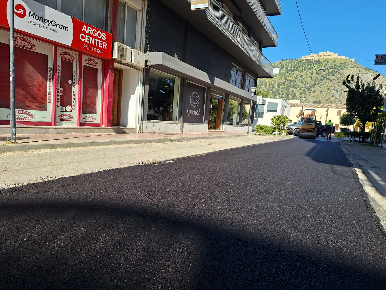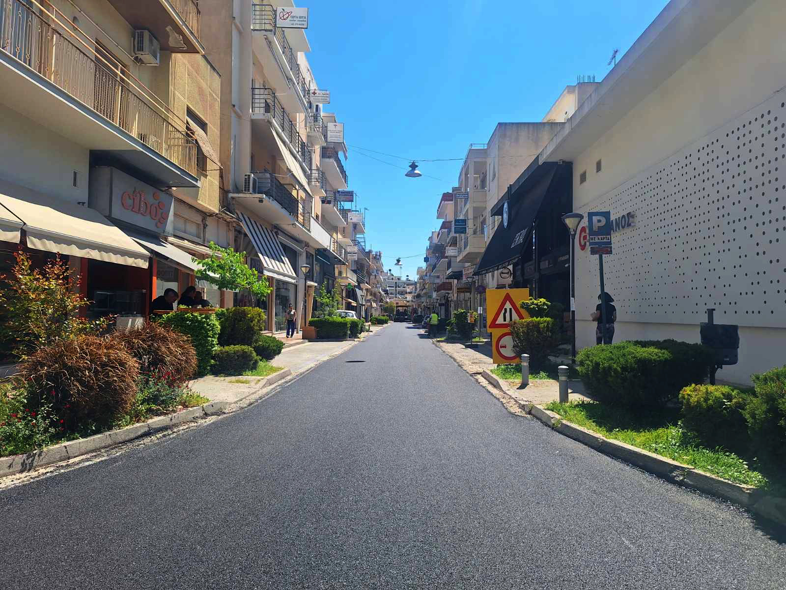 Η ασφαλτόστρωση κάλυψε όλο το μήκος της οδού, αλλάζοντας αισθητά την εικόνα του δρόμου και βελτιώνοντας, σύμφωνα με την εικόνα του έργου, τις συνθήκες κυκλοφορίας τόσο για τα οχήματα όσο και για τους πεζούς.