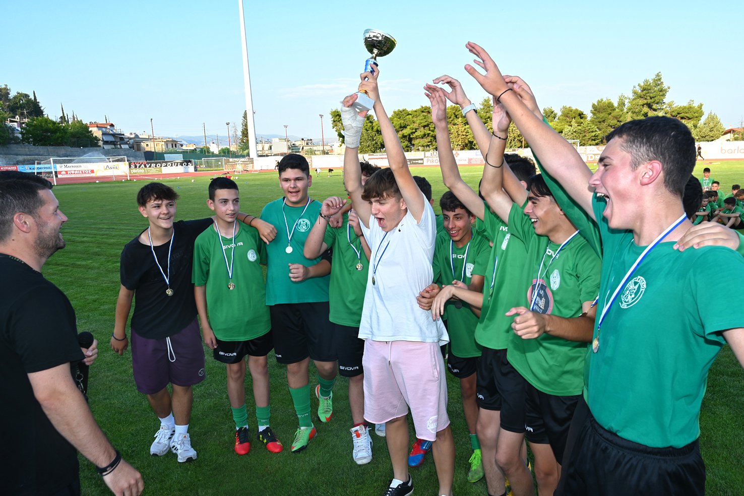 Στη συνέχεια ευχαρίστησε τους μικρούς αθλητές και τους γονείς αυτών για την στήριξη τους καθώς και τους προπονητές αυτών κ.κ Νικήτα Ταραντίλη, Σταύρο Δωρή, Κυριάκο Καραργύρη, Ανδρέα Καράγιωργα ,αλλά και τον υπεύθυνο της Ακαδημίας κ.Δημήτρη Ζαχαριά,τη γραμματέα κ. Τζίνα Πολίτη για την προσφορά τους στο πρώτο αυτό χρόνο λειτουργίας.