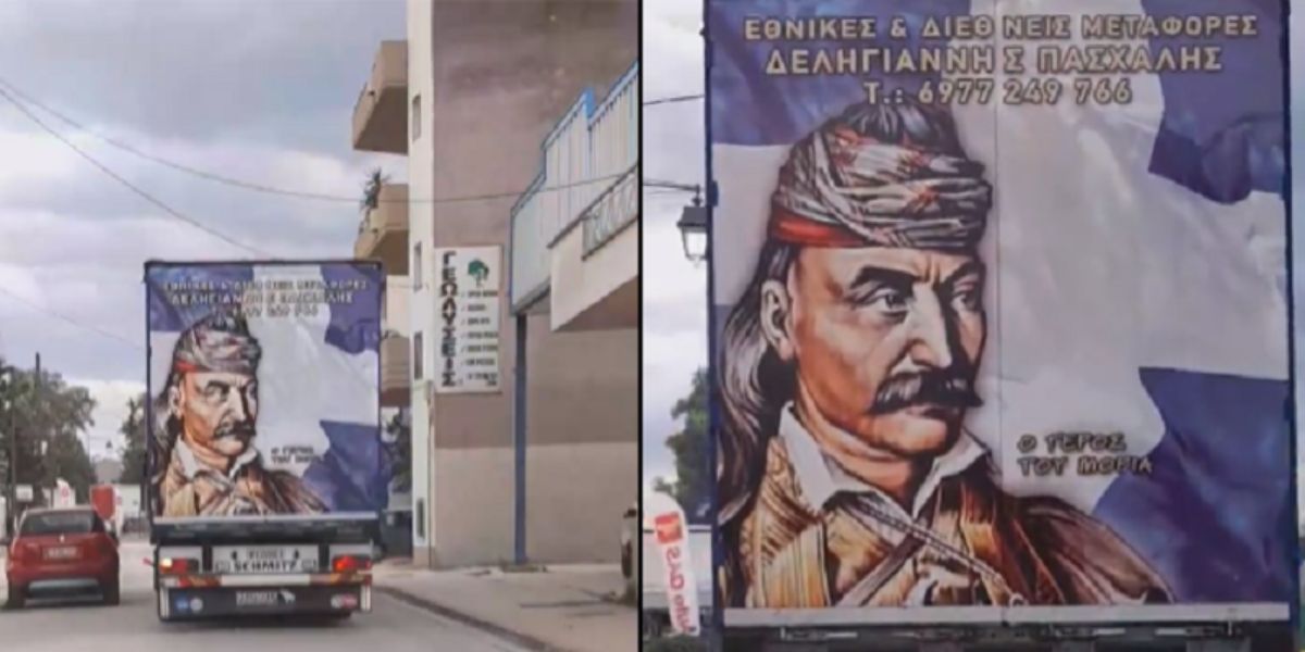 Με μια εντυπωσιακή νταλίκα, στην οποία δεσπόζει το πορτρέτο του Θεόδωρου Κολοκοτρώνη, έκανε το δρομολόγιό του επαγγελματίας οδηγός, τραβώντας όλα τα βλέμματα στο πέρασμά του.