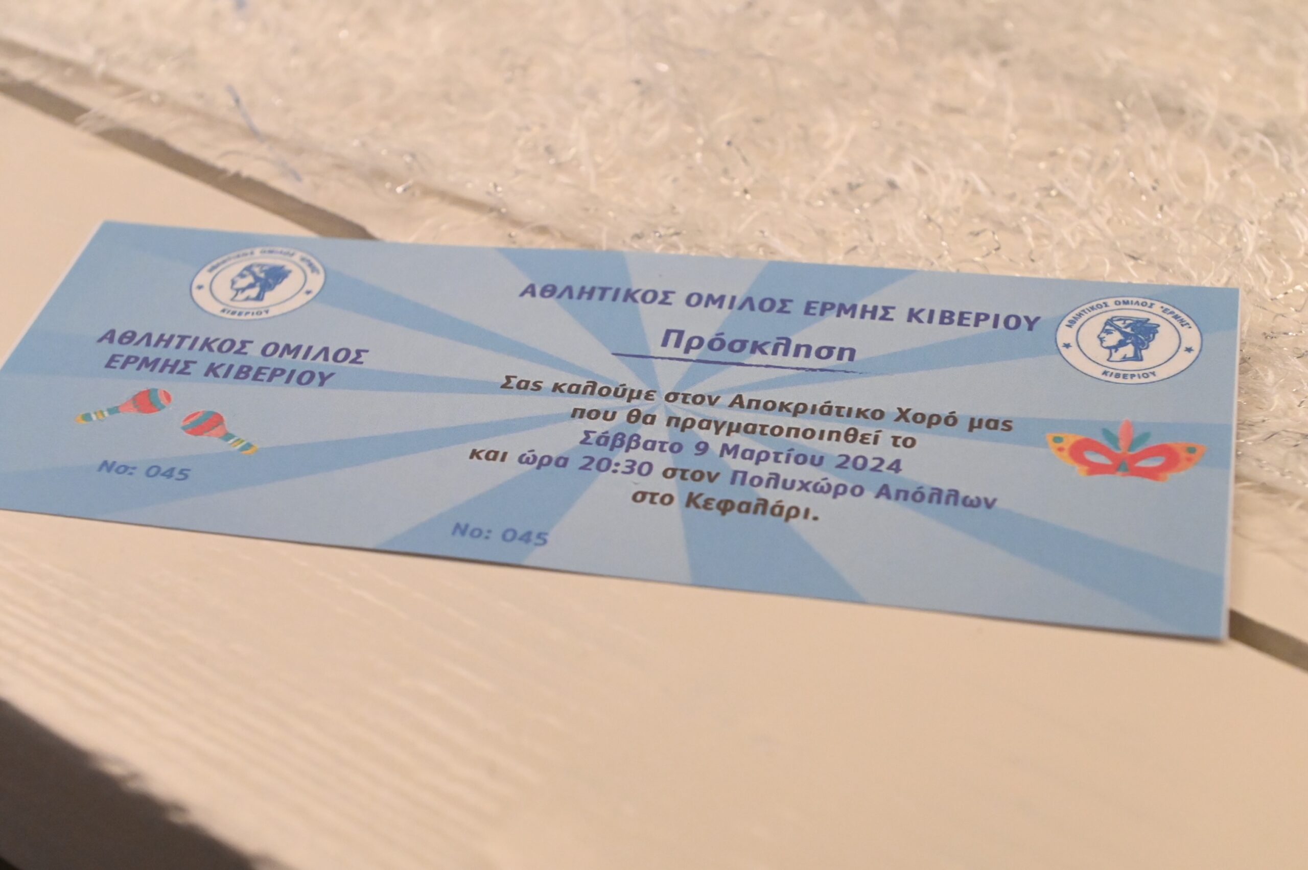 Με μεγάλη συμμετοχή, πολύ κέφι και βραβεύσεις πραγματοποιήθηκε ο αποκριάτικος χορός του Ερμή Κιβερίου το Σάββατο 9 Μαρτίου στο Κεφαλάρι. Οι φίλοι της ομάδας οι οποίοι γέμισαν την αίθουσα του πολυχώρου «ΑΠΟΛΛΩΝ» απόλαυσαν μια όμορφη βραδιά και διασκέδασαν μέχρι το πρωί.