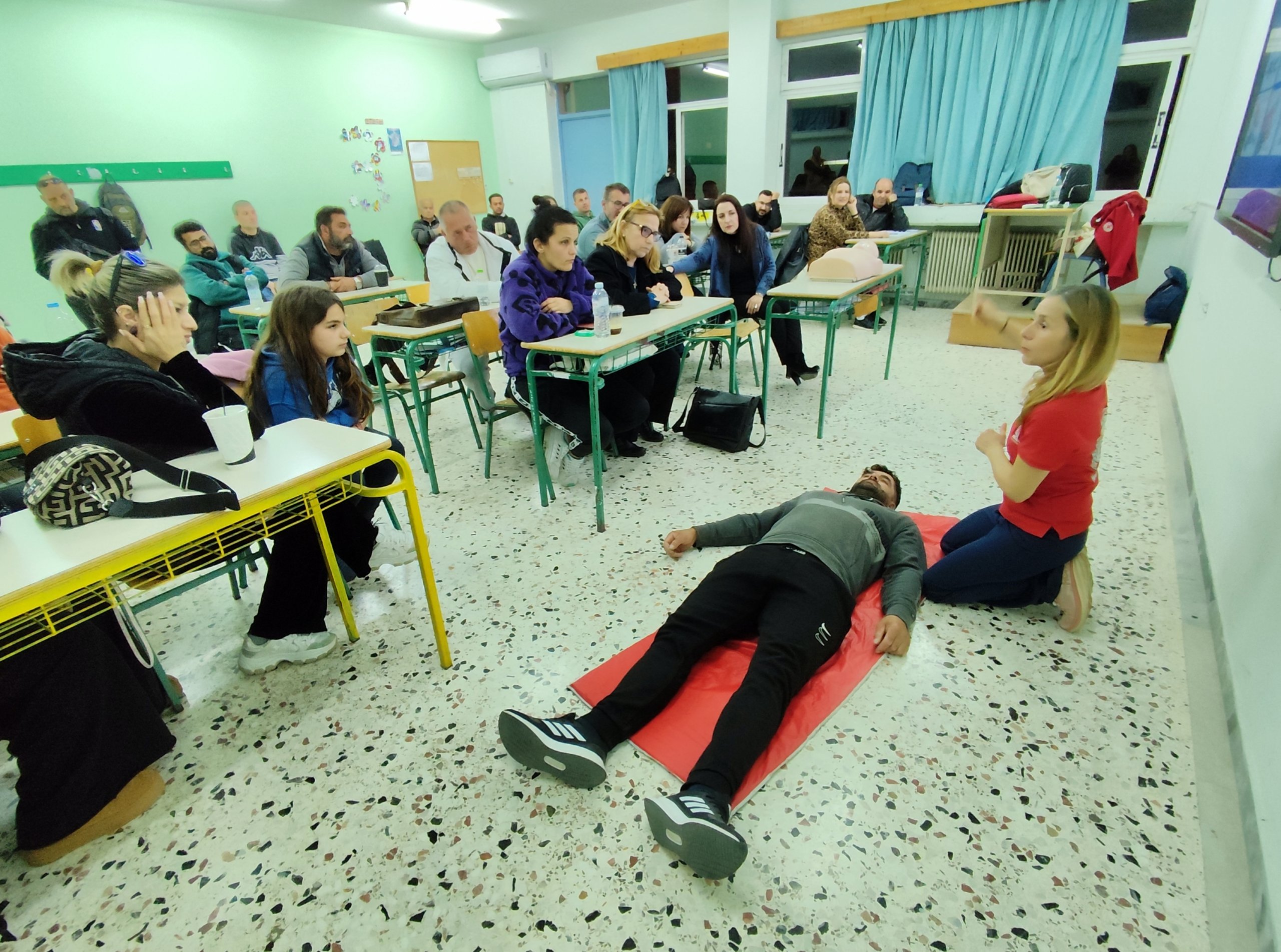 Οι μαθητές και οι εκπαιδευτικοί παρακολούθησαν με ιδιαίτερο ενδιαφέρον την παρουσίαση, συμμετέχοντας ενεργά και αντιλαμβανόμενοι τη σημασία της άμεσης και σωστής αντίδρασης σε επείγουσες καταστάσεις.