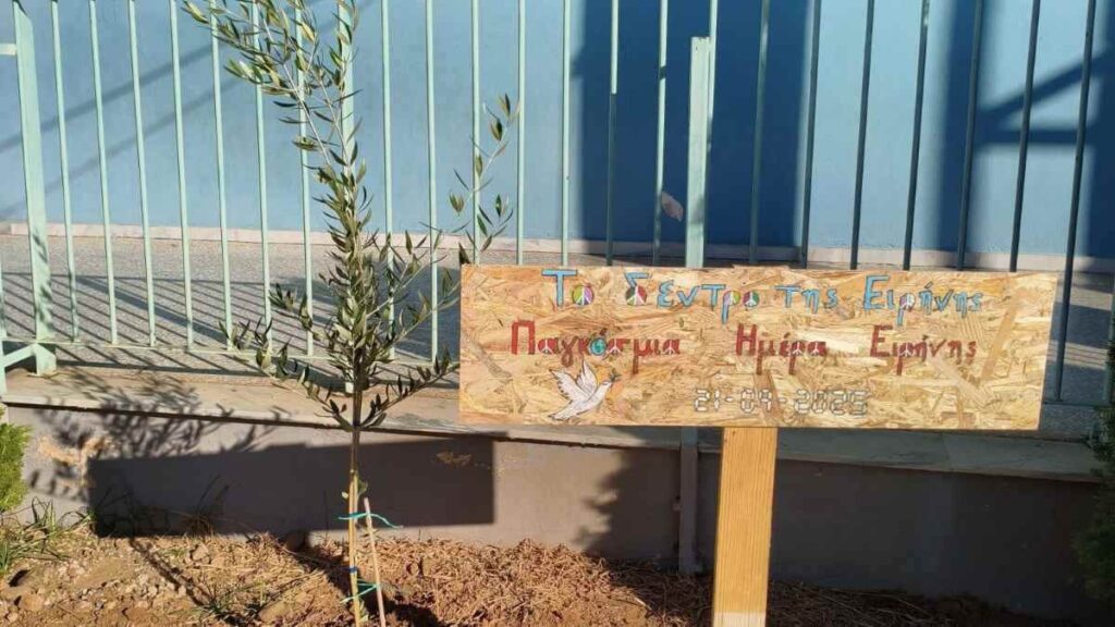 Οι μικροί μαθητές της Α΄ και Β΄ τάξης φύτεψαν μια ελιά, το δέντρο-σύμβολο της ειρήνης, το οποίο και υιοθέτησαν ως χώρο συμφιλίωσης.
