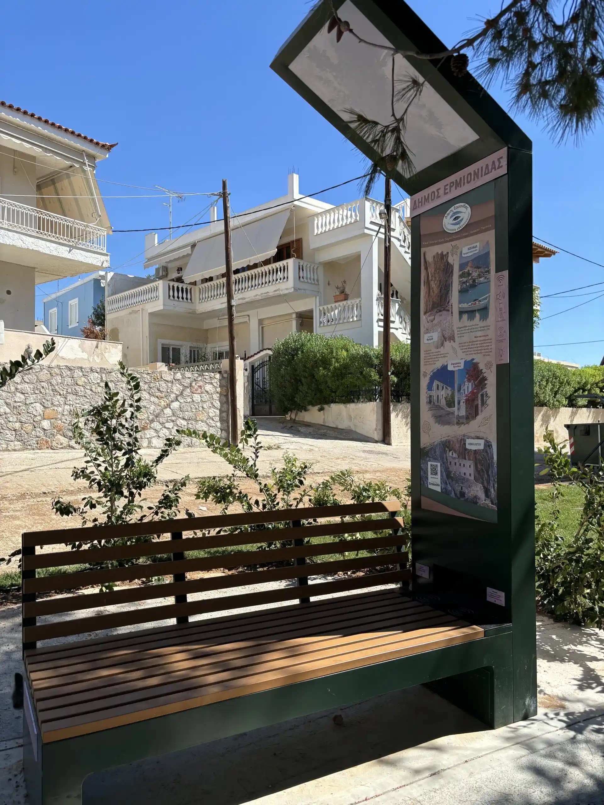 Επιπλέον, εγκαταστάθηκε νέος σύγχρονος αστικός εξοπλισμός, τοποθετήθηκαν όργανα γυμναστικής για την άθληση των πολιτών, τραπεζοπάγκοι, παγκάκια, ένα ενεργειακό παγκάκι με ηλιακό πάνελ, ένα παγκάκι με σκέπαστρο, στο οποίο έχουν τοποθετηθεί κωδικοί QR που παραπέμπουν στην τουριστική ιστοσελίδα του Δήμου Ερμιονίδας (www.visitermionida.gr), ένα κιόσκι, ένας τραπεζοπάγκος με σκάκι και ένα τραπέζι Πινγκ – Πονγκ.