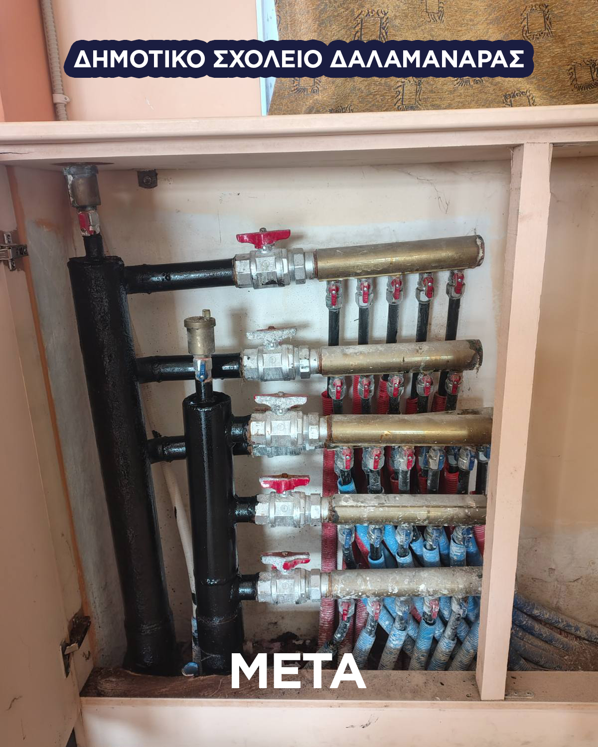 Παράλληλα, στο Δημοτικό Σχολείο Δαλαμανάρας έγινε επισκευή και αντικατάσταση του κεντρικού κολεκτέρ θέρμανσης, που είχε υποστεί σοβαρή φθορά.