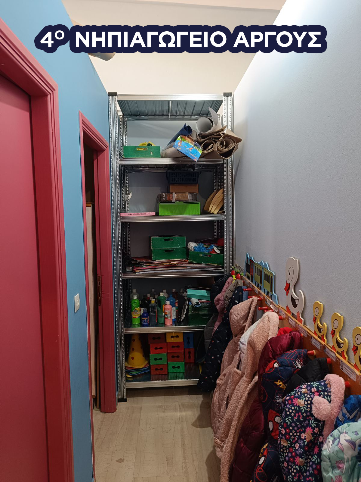 Επιπλέον, τοποθετήθηκαν βοηθητικά αποθηκευτικά ράφια σε πέντε νηπιαγωγεία, μεταξύ των οποίων και στο 4ο Νηπιαγωγείο Άργους, όπου πραγματοποιήθηκε και ανακαίνιση της τουαλέτας.