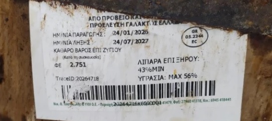 Το προϊόν αφορά παρτίδα με αριθμό 24/07/2027 (ΦΕ-2751), με ημερομηνία παραγωγής 24/01/2026 και ημερομηνία ανάλωσης 24/07/2027, το οποίο παράγεται από την επιχείρηση «ΝΙΚΟΛΑΟΣ ΤΣΑΤΣΟΥΛΗΣ & ΥΙΟΙ Ο.Ε.».