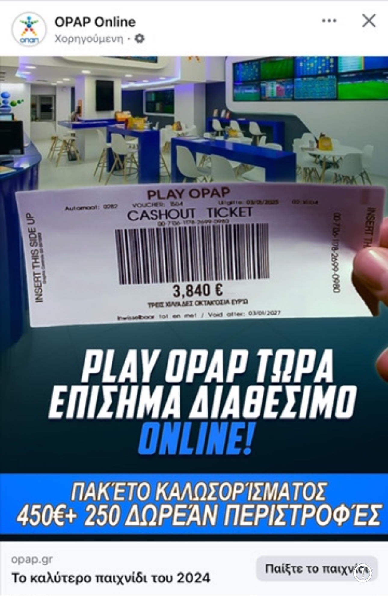 Χρησιμοποιούν το όνομα του ΟΠΑΠ για να παρασύρουν ανυποψίαστους χρήστες