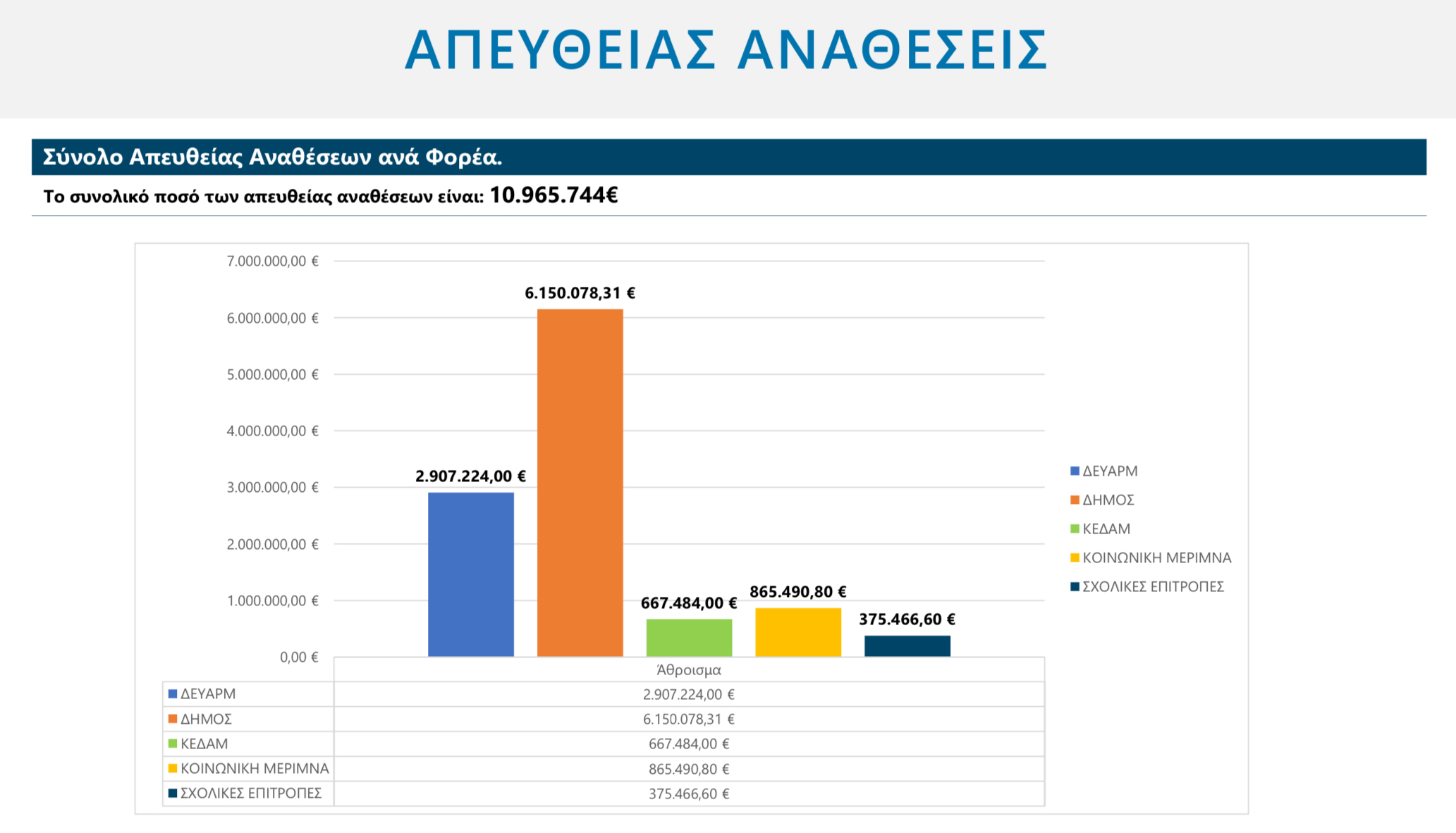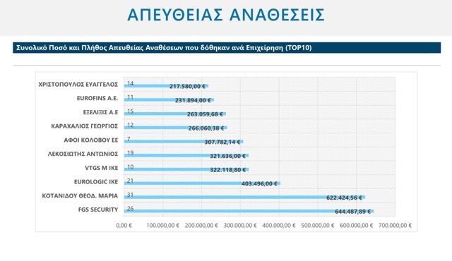Από αυτά λιγότερο από τα μισά (5.202.482) δόθηκαν σε εταιρίες του Δήμου μας, και από το ποσό αυτό το 35% περίπου σε 10 συγκεκριμένες εταιρίες !