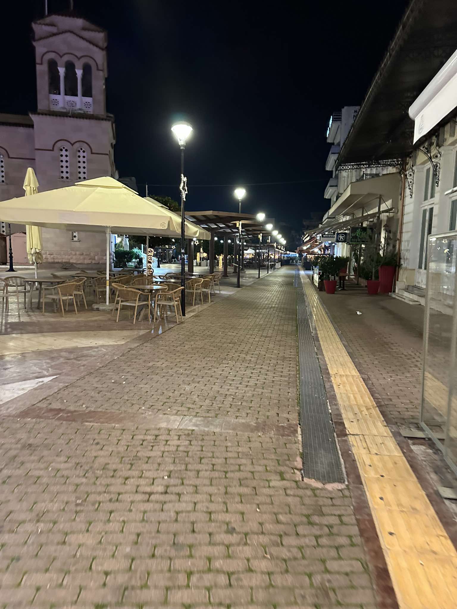 Οι φωτογραφίες που τραβήξαμε μεταξύ 21:50 και 22:15 αποτυπώνουν μια πόλη φάντασμα, με τους δρόμους και τις πλατείες να μοιάζουν εγκαταλελειμμένες. Η νυχτερινή διασκέδαση και οι επιλογές ψυχαγωγίας φαίνεται να έχουν εξαφανιστεί από το λεξιλόγιο της πόλης, δημιουργώντας αίσθημα θλίψης στους κατοίκους και τους (ελάχιστους) επισκέπτες.