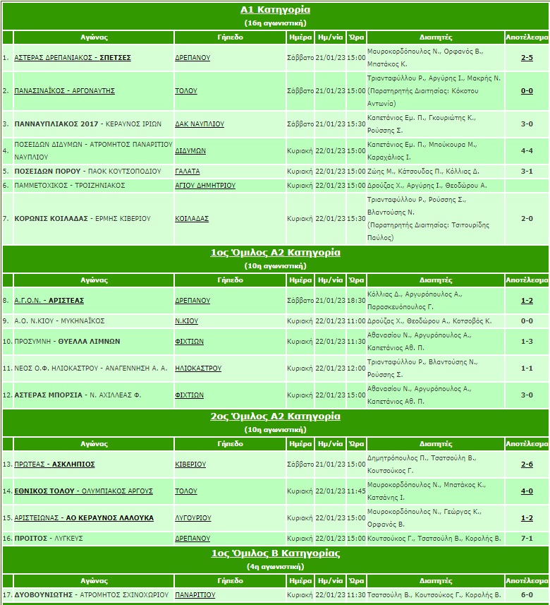 Δείτε παρακάτω τα αποτελέσματα των αγώνων στα ερασιτεχνικά πρωταθλήματα της Αργολίδας και στον 4ο όμιλο της Γ’ Εθνικής.