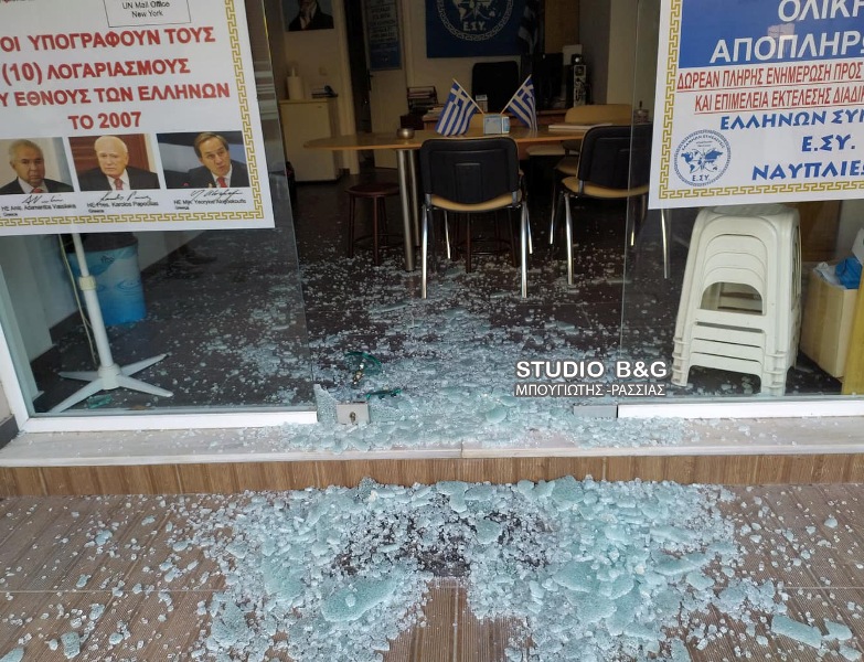 Επίθεση στα γραφεία του Αρτέμη Σώρρα στο Ναύπλιο. “Κατέβασαν” την τζαμαρία! (Pics)