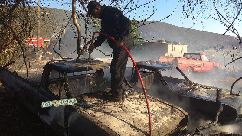 ΝΑΥΠΛΙΟ: Κάηκαν αυτοκίνητα και αγροτικά μηχανήματα στα Ίρια (Pics)