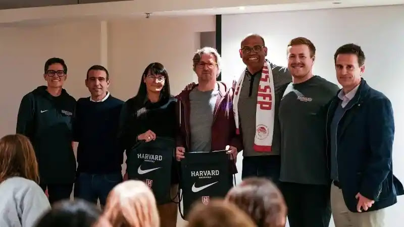“Η Ομάδα Υδατοσφαίρισης Γυναικών του Harvard ολοκλήρωσε με επιτυχία την επίσκεψή της στην Ελλάδα, η οποία περιλάμβανε καθημερινές προπονήσεις, περιήγηση σε αρχαιολογικούς χώρους και άλλα σημεία ενδιαφέροντος και ένα εξαιρετικό φιλικό παιχνίδι με την Εθνική Ομάδα Υδατοσφαίρισης Νέων Γυναικών Κ19 στις 12 Ιανουαρίου. Μετά τον αγώνα, η ομάδα συναντήθηκε και δείπνησε με μέλη του Συλλόγου Αποφοίτων του Harvard στην Ελλάδα και του Διοικητικού Συμβουλίου του, το οποίο εκπροσωπήθηκε από τη Μαριάννα Αθανασιάδου, Γραμματέα, και την Καλλιόπη Τράπαλη, Μέλος.